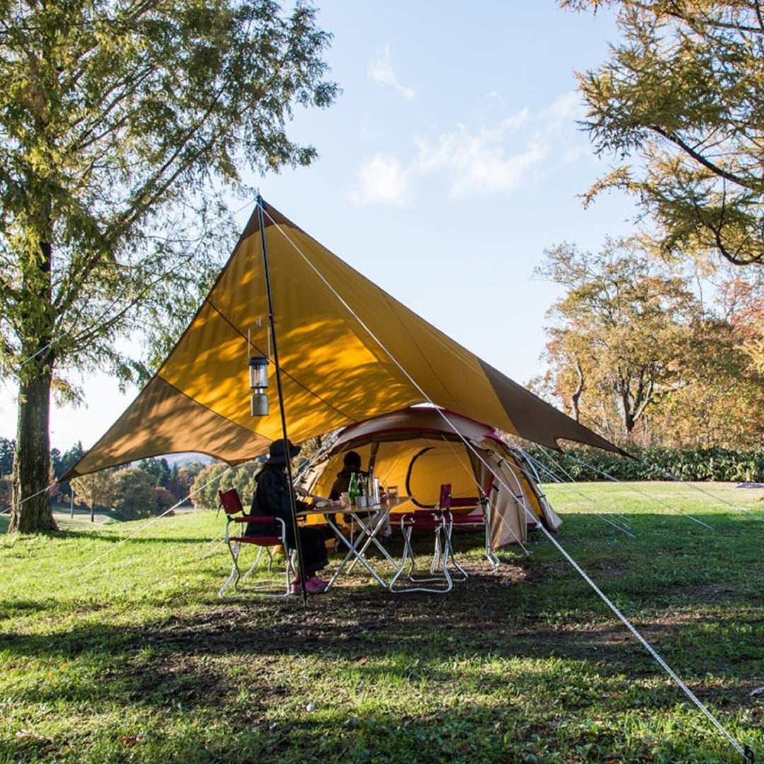 日中は日よけとして、また雨や風をよけるためにも、実はタープが重要。家族や仲間との団らんの時間に、欠かせないアイテムです。